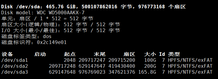 使用sudo fdisk -l 查看已有的硬盘和分区情况